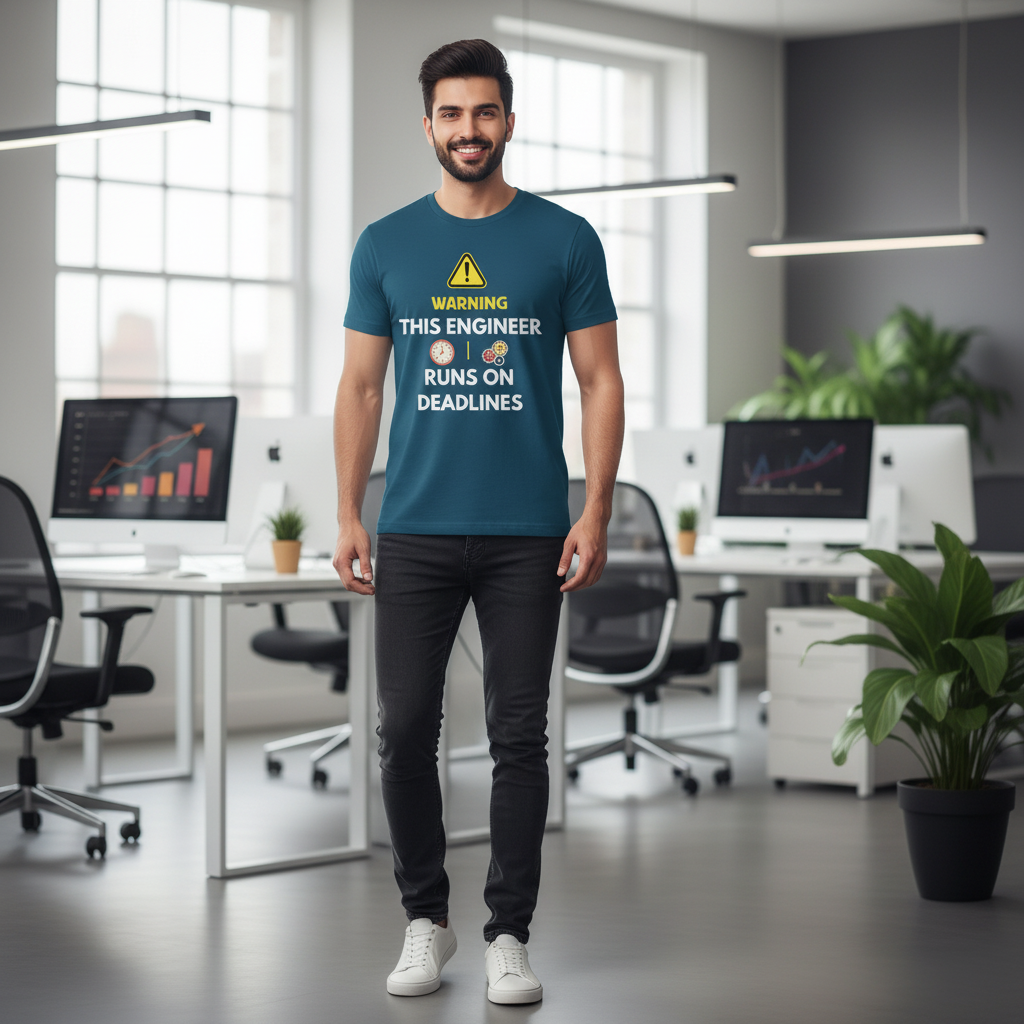 This Engineer Runs on Deadlines. Premium 100% Cotton Unisex T-Shirt – 180 GSM Regular Fit | Soft, Breathable & Everyday Wear Tee